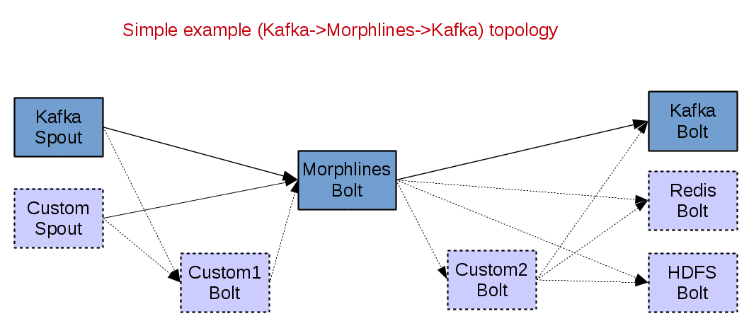 In order to use Morphlines inside Storm, I have implemented a custom MorphlinesBolt. The main responsibilities of this Bolt are: